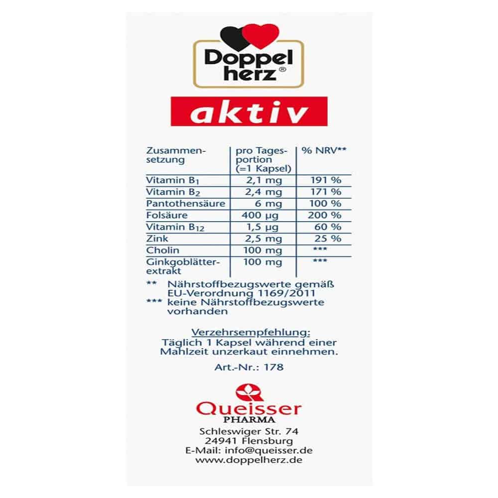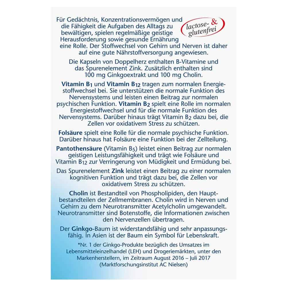 - Ginkgo Doppelherz Aktiv chứa Vitamin B2. Đóng một vai trò quan trọng trong việc chuyển hóa năng lượng bình thường và chức năng bình thường của hệ thần kinh. Giúp bảo vệ các tế bào khỏi quá trình ôxy hoá.