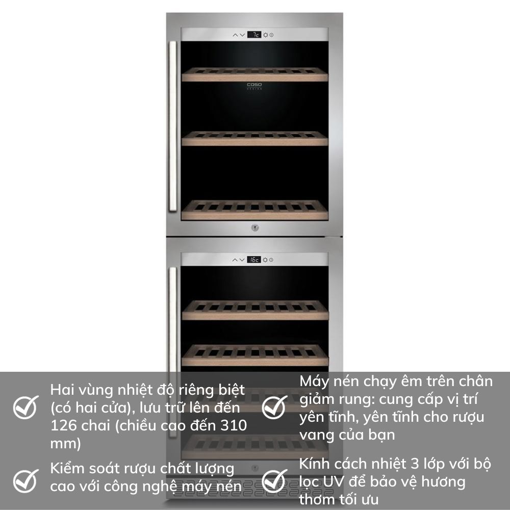 Tủ Bảo Quản Rượu Vang CASO WineChef Pro 126-2D – Nhập Khẩu Đức & EU
