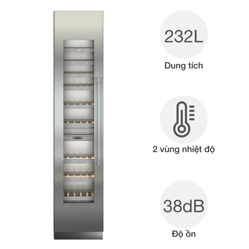 | Tiện ích | Kiểm soát thiết bị thông minh SmartDeviceBox Cảnh báo biến động nhiệt độ InfinityProtection Cơ chế đóng mở cửa nhẹ nhàng SoftSystem Nhãn phân loại rượu vang Tiện ích khi sắp xếp rượu InfinityBoard Ray kéo giảm chấn Telescopic |