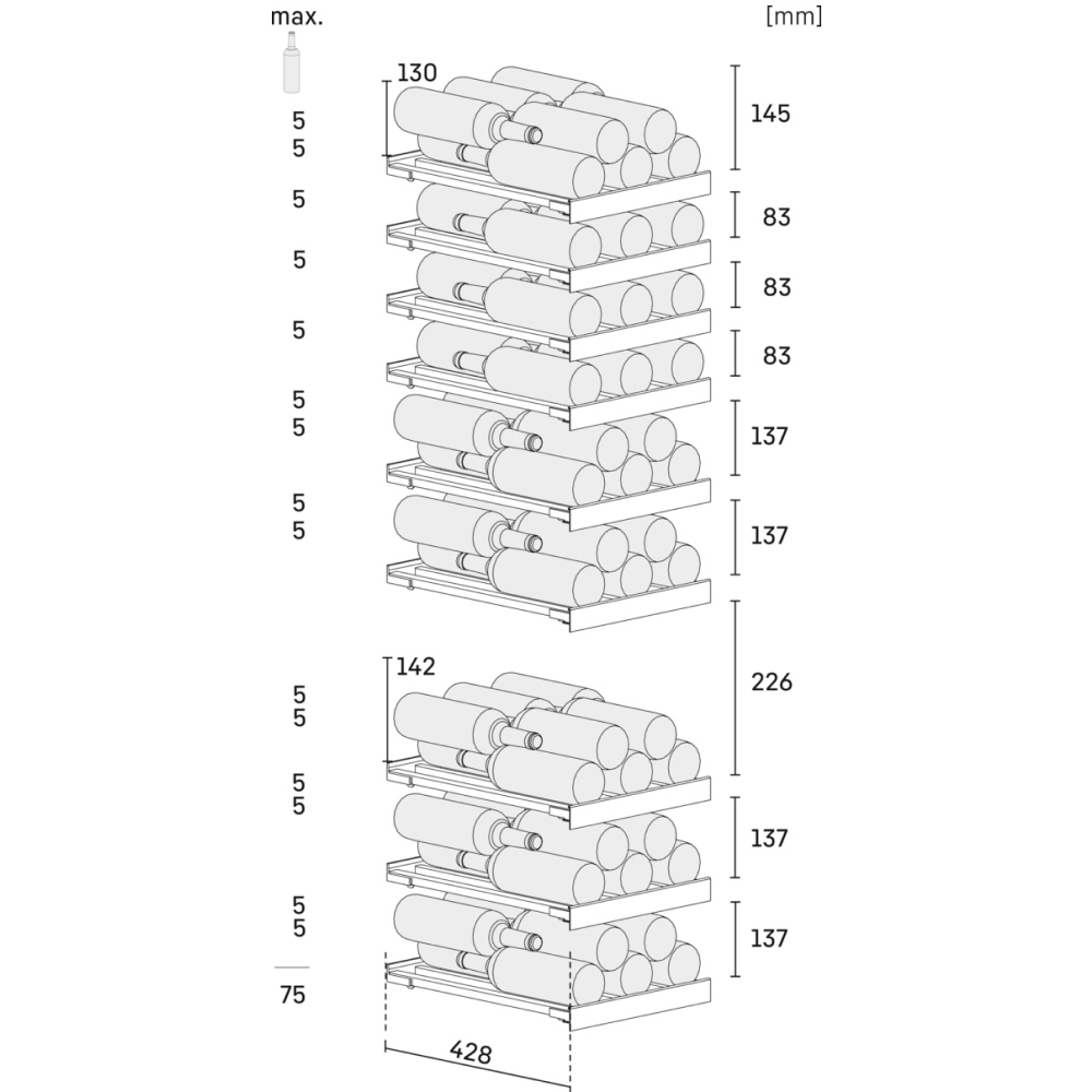 Với nhãn phân loại rượu được dán trực tiếp vào thanh nhôm của kệ bảo quản, bạn luôn có thể kiểm soát tối ưu các loại rượu của mình. Thiết kế này giúp bạn sắp xếp mọi thứ gọn gàng và cho phép bạn có cái nhìn tổng quan về tất cả các loại rượu đang được bảo quản. Điều này giúp tạo ra một không gian sắp xếp hợp lý và dễ dàng quản lý, đồng thời giúp bảo quản rượu vang một cách hiệu quả nhất.