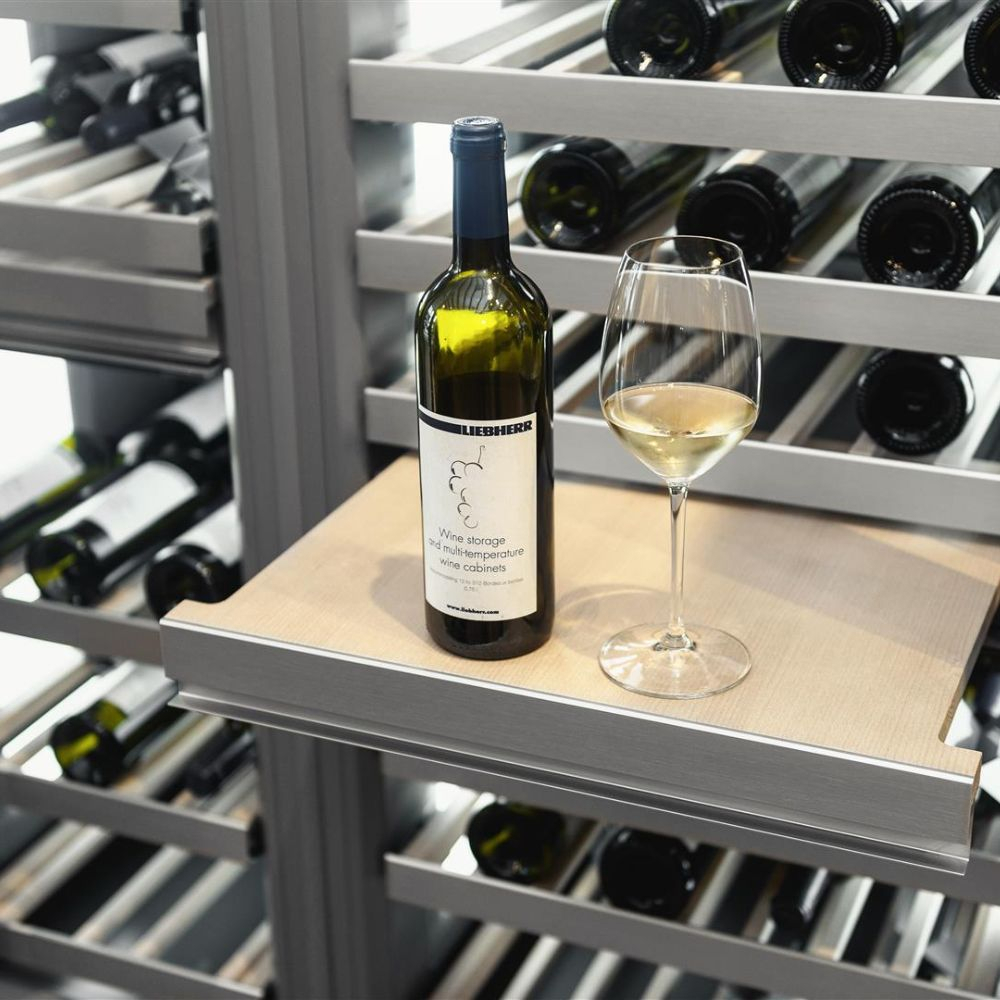 Một điểm đặc biệt của tủ bảo quản rượu vang Liebherr EWT 9175 Monolith là thiết kế kệ InfinityBoard. Bạn có thể sử dụng InfinityBoard như một kệ tạm thời khi sắp xếp các chai rượu vào vị trí bảo quản đúng đắn. Hoặc bạn cũng có thể dùng InfinityBoard để đặt ly rượu mà không cần phải lấy hoàn toàn chai ra khỏi ngăn bảo quản.