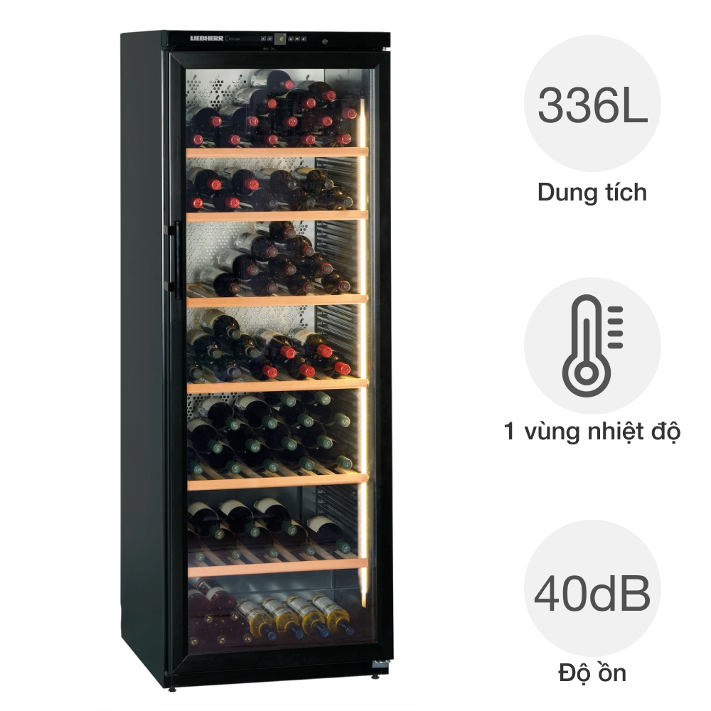 | Tổng dung tích tủ | 336 L – 195 chai Bordeaux tối đa 0,75 L |