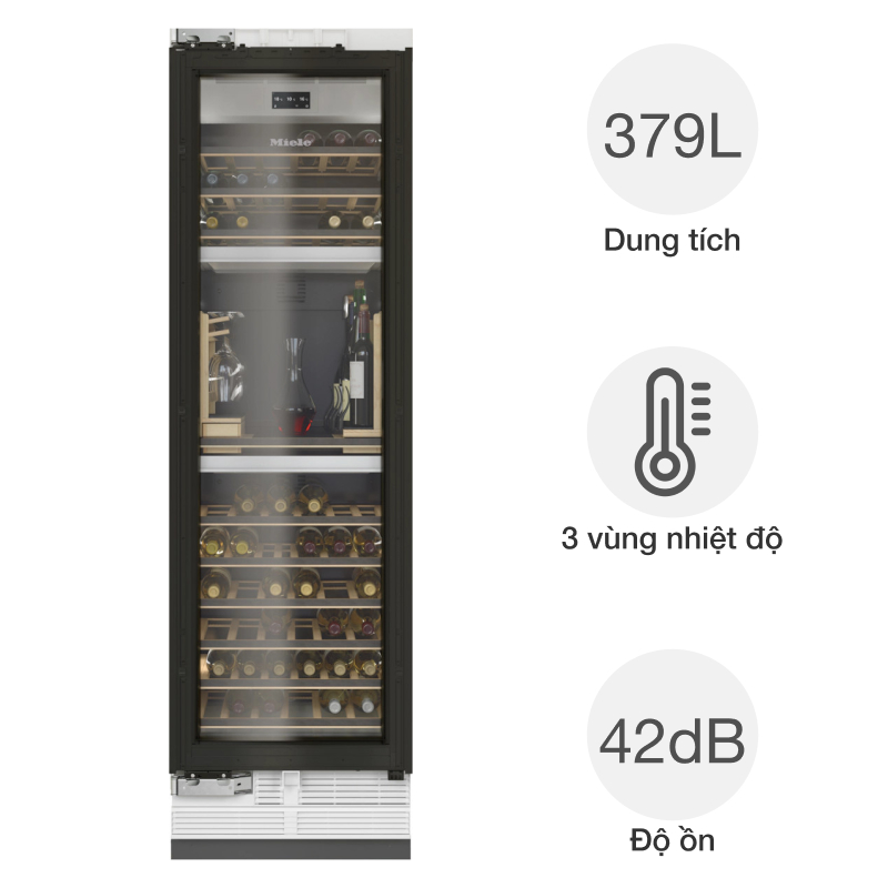 | Tổng dung tích tủ | 379 L – 91 chai rượu (0,75 L) |