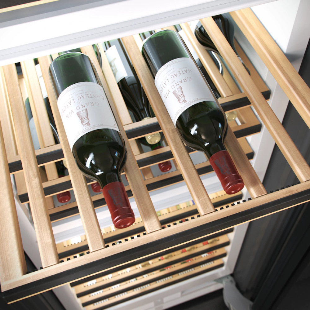 Các thanh gỗ trên kệ FlexiFrame có thể linh hoạt điều chỉnh để phù hợp với nhiều kích thước chai rượu khác nhau, từ những chai tiêu chuẩn (Bordeaux 0,75 L) cho đến những chai rượu lớn hơn, tiết kiệm không gian một cách hiệu quả và đảm bảo chai rượu được giữ an toàn, không bị xô lệch trong suốt quá trình lưu trữ. Bên cạnh đó, các kệ bảo quản còn được trang bị ray trượt giảm chấn, giúp quý khách có thể dễ dàng kéo các kệ ra bên ngoài để lấy và sắp xếp chai rượu mà không làm ảnh hưởng đến những chai rượu khác đang được bảo quản trong khoang tủ.