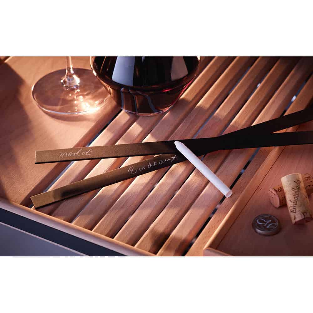 Mỗi giá để rượu đều có một thẻ ghi chú mà bạn có thể chú thích bằng phấn để có cái nhìn tổng quan hơn. Đồng thời kiểm soát dễ dàng hơn về các loại rượu trong bộ sưu tập. Ví dụ: bạn có thể ghi chú xuất xứ, giống nho hoặc niên vụ. Thẻ ghi chú có từ tính và có thể được lấy ra khỏi giá treo.