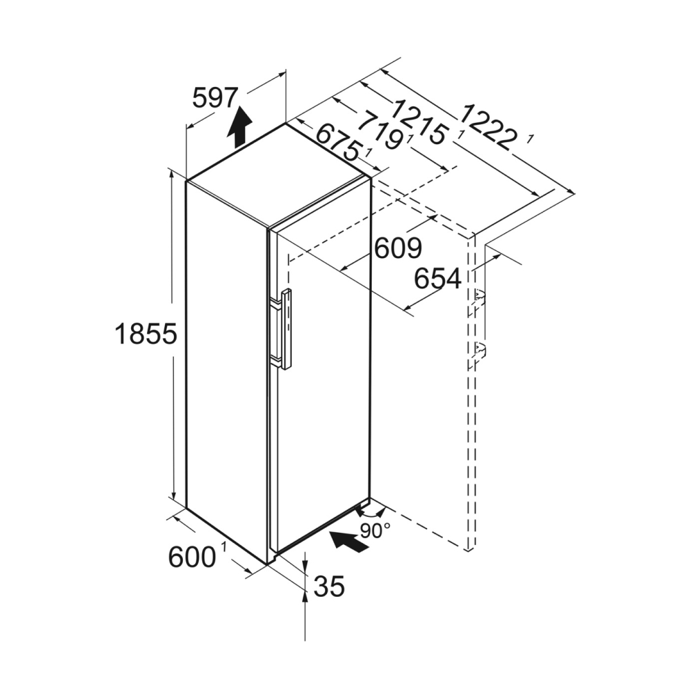 Thiết kế của tủ đông Liebherr phù hợp với kiểu lắp đặt độc lập, có thể ghép đôi side-by-side nên bạn linh hoạt chọn lựa vị trí trưng bày thiết bị và để đảm bảo hiệu suất vận hành và tính thẩm mỹ tổng thể cho căn bếp nên lắp đặt theo thông số được hãng khuyến nghị: