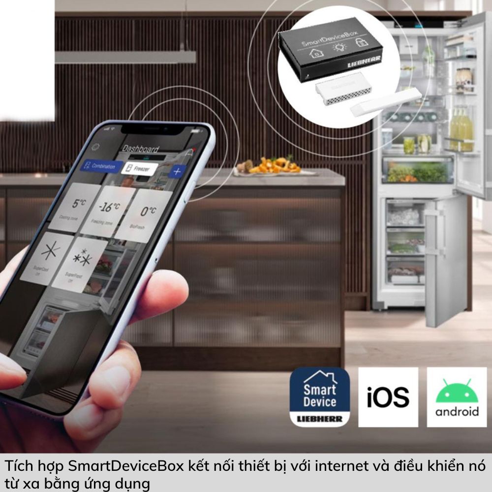 Tủ đông Liebherr SIFNei 5188 tích hợp SmartDeviceBox, cho phép bạn kết nối thiết bị với internet và điều khiển nó từ xa bằng ứng dụng SmartDevice thông qua mạng Wifi.