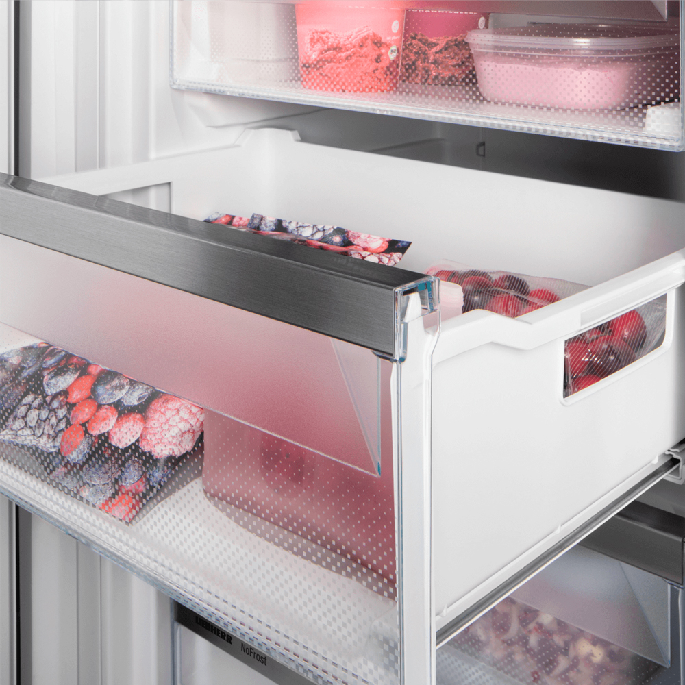 Khi bạn mở ngăn kéo trong tủ đông Liebherr SIFNei 5188, bạn không chỉ được chào đón bởi hình ảnh thực phẩm của bạn mà còn bởi ánh sáng hấp dẫn. Điều này do đèn LED mạnh mẽ, tuổi thọ cao và thân thiện với môi trường cung cấp. Ánh sáng này giúp bạn dễ dàng nhìn thấy tất cả thực phẩm và cũng là một yếu tố thiết kế độc đáo.
