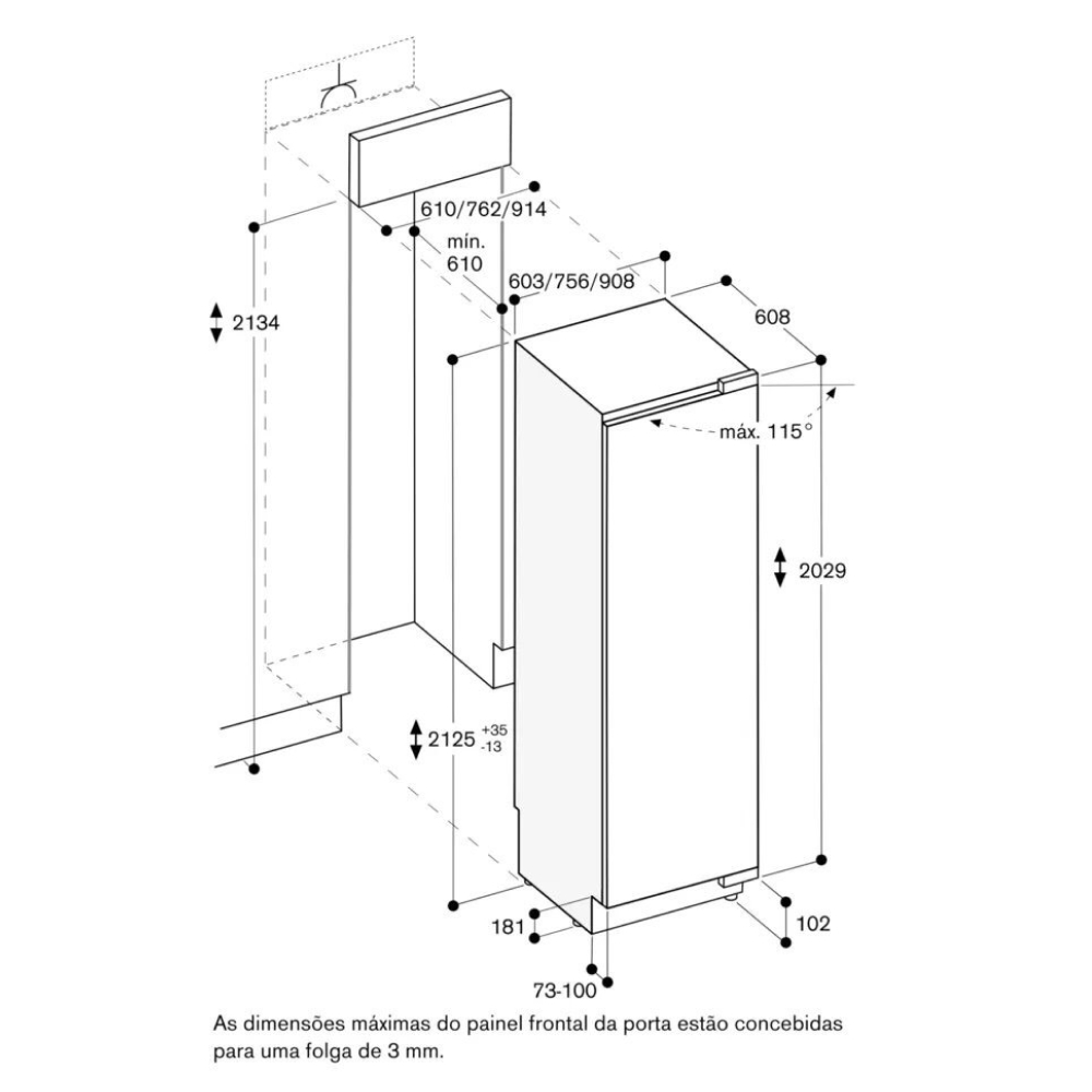 | Kiểu tủ | Tủ lạnh 1 ngăn lạnh – Âm tủ, có thể ghép đôi (side-by-side) |