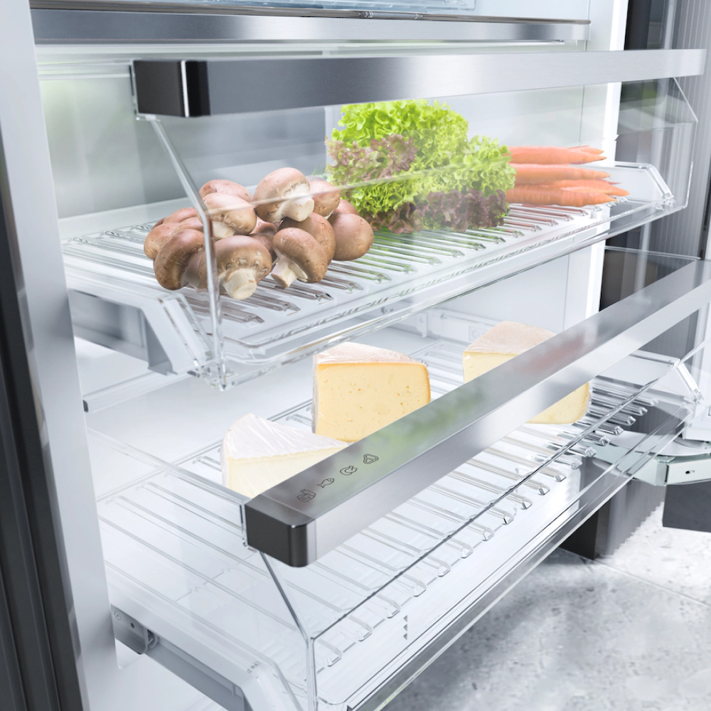 Các ngăn đựng thực phẩm của tủ lạnh Miele K 2802 Vi tạo môi trường lý tưởng để bảo quản đồ ăn, thức uống được tươi lâu hơn gấp 3 lần. Master Fresh tạo ra độ ẩm và nhiệt độ hoàn hảo, có thể điều chỉnh để phù hợp với trái cây, rau củ, thực phẩm sống: thịt, cá và các sản phẩm từ sữa,… Nhờ chức năng Smart Fresh cải tiến, nhiệt độ tủ lạnh đặc biệt thấp, giúp bảo quản vitamin và khoáng chất trong thời gian dài. Mọi lo lắng về bảo quản thực phẩm không còn là vấn đề vì đã có tủ lạnh Miele K 2802 Vi hỗ trợ, giờ đây việc cất trữ thực phẩm sẽ thật nhẹ nhàng và không còn là mối lo ngại nữa. Đối với việc nước ngưng tụ và sương giá có thể tích tụ trên thành sau của tủ lạnh và ngăn MasterFresh trong khi sử dụng. Bạn không cần phải loại bỏ cái này, vì nó sẽ rã đông và bay hơi tự động với hơi ấm do tủ lạnh Miele K 2802 Vi tạo ra.