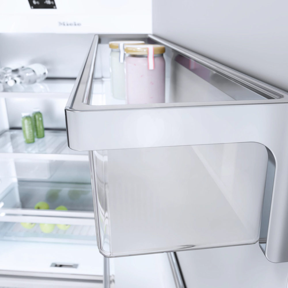 | Tiện ích | – Cơ chế mở cửa không cần tay nắm Push2open – Cơ chế đóng cửa giảm chấn SoftClose và tự động đóng ở góc 30° SelfClose – Bản lề cửa MaxLoad chắc chắn – Khay kệ có thể điều chỉnh độ cao – Thuận tiện thao tác và điều chỉnh không gian lưu trữ với tính năng FullAccess và SlidingShelf – Làm lạnh nhanh Super Cooling – Chế độ tiết kiệm điện Eco – Chế độ ngày lễ Sabbath – Điều khiển & kiểm soát từ xa qua điện thông qua app Miele@home – Bề mặt tủ dễ lau chùi và vệ sinh EasyClean |
