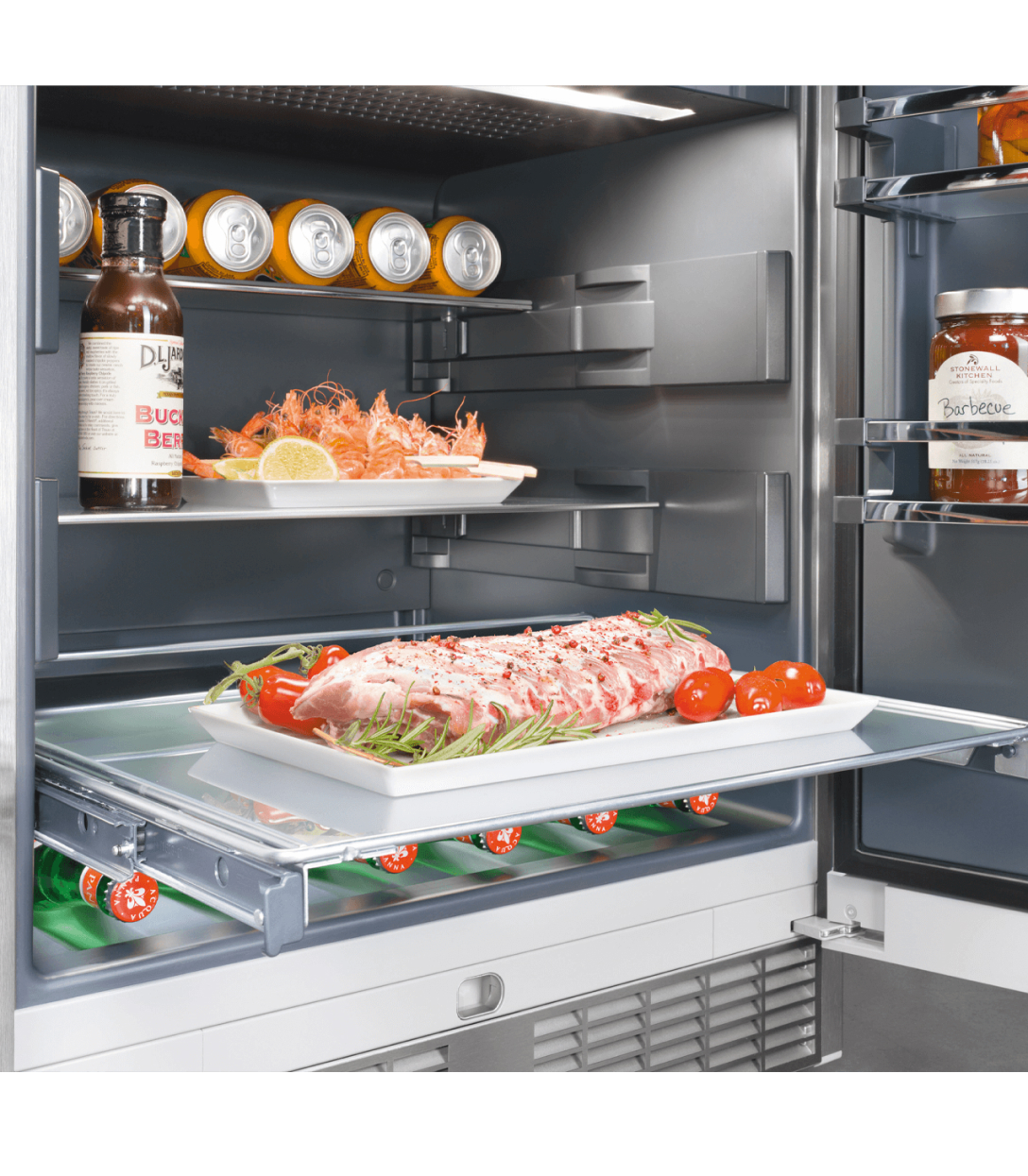 Các kệ bên cánh cửa tủ lạnh có thể điều chỉnh độ cao, giúp bảo quản đồ uống một cách an toàn và thuận tiện. Bạn cũng có thể tháo rời khay kệ tùy theo mục đích sử dụng.