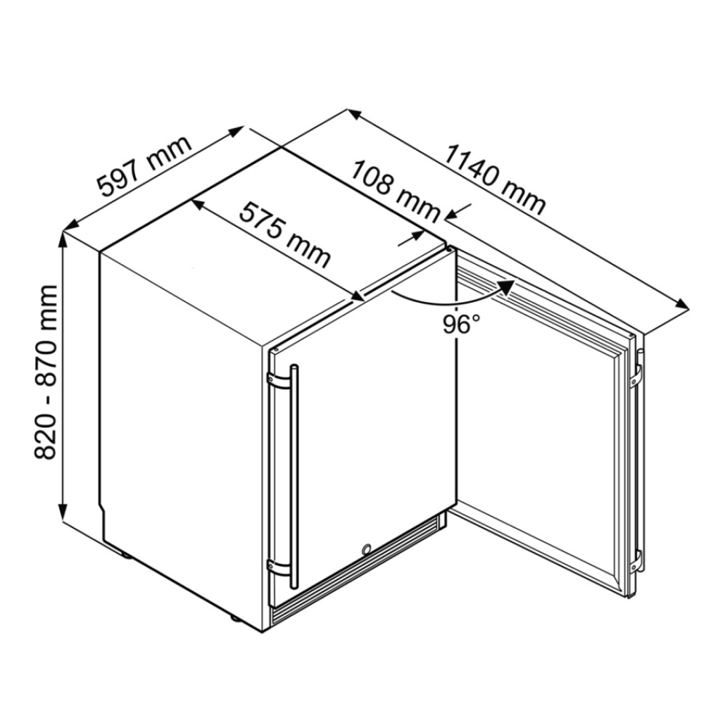 | Tiện ích | Dải nhiệt độ có thể điều chỉnh từ 2°C đến 14°C Lưới thông gió đóng kín với bộ lọc bụi Bảng điều khiển MagicEye Đèn nội thất LED Chân tủ có thể điều chỉnh độ cao |