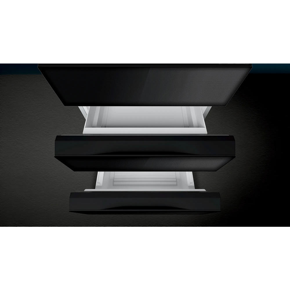 Nội thất tủ lạnh Siemens iQ700 KF86FPBEA với tất cả các kệ kính đều được làm bằng kính an toàn siêu bền, dễ lau chùi. Nếu có vật gì đó rơi xuống, chất lỏng tràn sẽ được chứa và không chảy qua toàn bộ ngăn tủ lạnh.