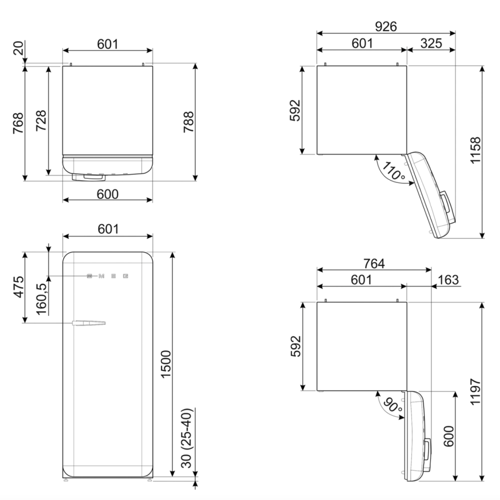 Thông số kỹ thuật và tổng quan tủ lạnh Smeg Inverter 270 lít FAB28 màu trơn