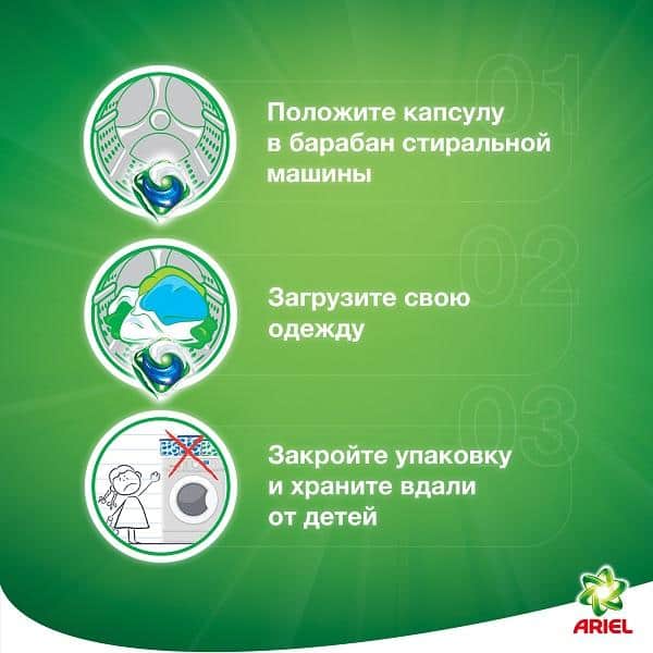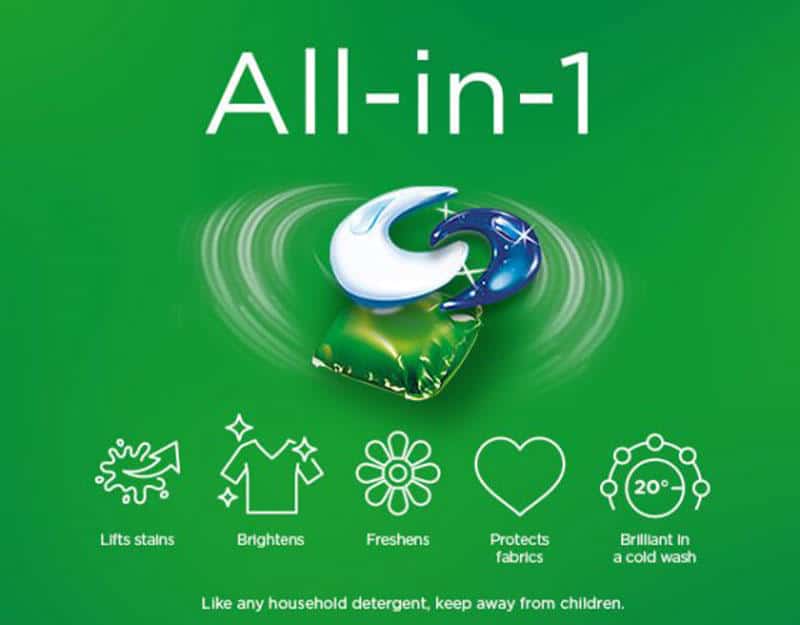 Túi Viên Giặt Ariel Color 8037 – 50 Viên cấu tạo gồm các ngăn riêng biệt và được giải phóng các thành phần trong quá trình giặt. Nhờ đó chúng mang lại hiệu suất giặt rất mạnh mẽ thành phẩm trong 1 viên rửa, nhờ đó đánh bay mọi vết bẩn. Túi Viên Giặt Ariel Color hiệu quả cao với công thức độc quyền từ Ariel, đem lại hương thơm ngát bền lâu cho quần áo, và thân thiện với môi trường, màng phim của pod hòa 100% trong nước và phân hủy sinh học nên không hề để lại cặn nhựa.