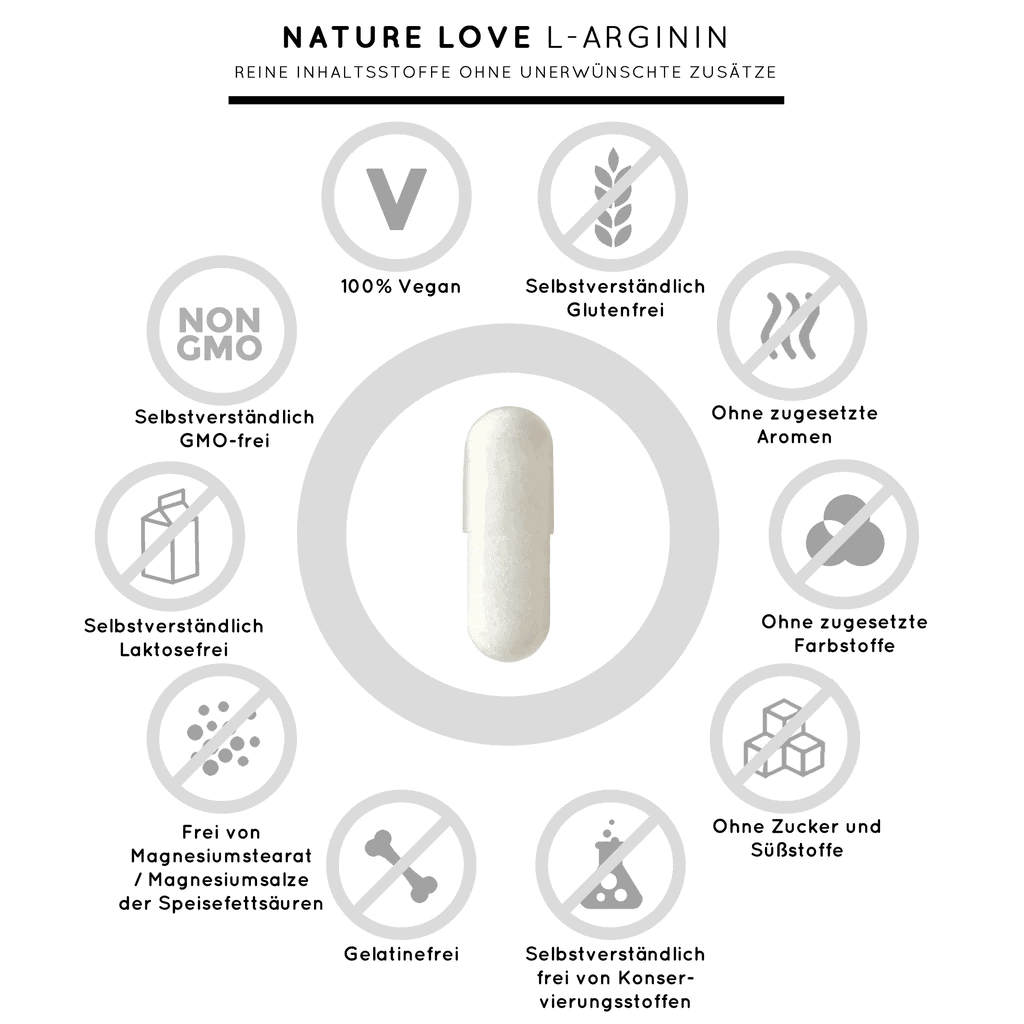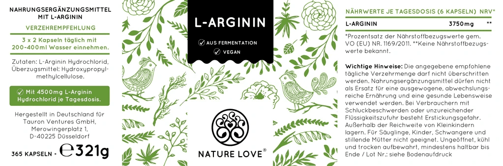Nguyên liệu cao cấp 100% thuần chay: L-arginine thực vật chất lượng cao. Arginine của chúng tôi thu được từ quá trình lên men của ngô. Đó là rau và thuần chay. Được sản xuất tại Đức trong các hệ thống được kiểm tra nghiêm ngặt, theo yêu cầu của luật thực phẩm với chứng nhận HACCP.
