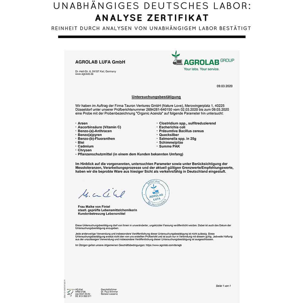 - Mỗi lô sản xuất đều được phòng thí nghiệm độc lập và uy tín Agrolab / LUFA GmbH kiểm tra chất lượng sản phẩm
