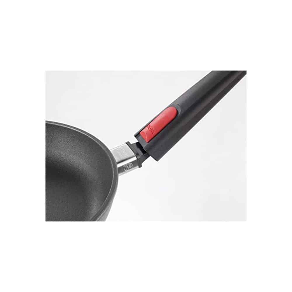 Chảo Gang Woll Diamond Lite Saute 1728DPI 28cm có tay cầm chịu nhiệt 250 °C đảm bảo sự an toàn tuyệt đối khi bạn chạm vào nó. Bên cạnh đó, chảo Woll cho phép bạn tháo rời và gắn bằng một tay – đảm bảo luôn luôn dễ dàng và thuận tiện trong quá trình sử dụng. Để chiếc tủ bếp thêm xinh xắn và gọn gàng, hãy tháo tay cầm của chảo WOLL trước khi cho chảo lên kệ hoặc cho vào rửa trong máy rửa bát.
