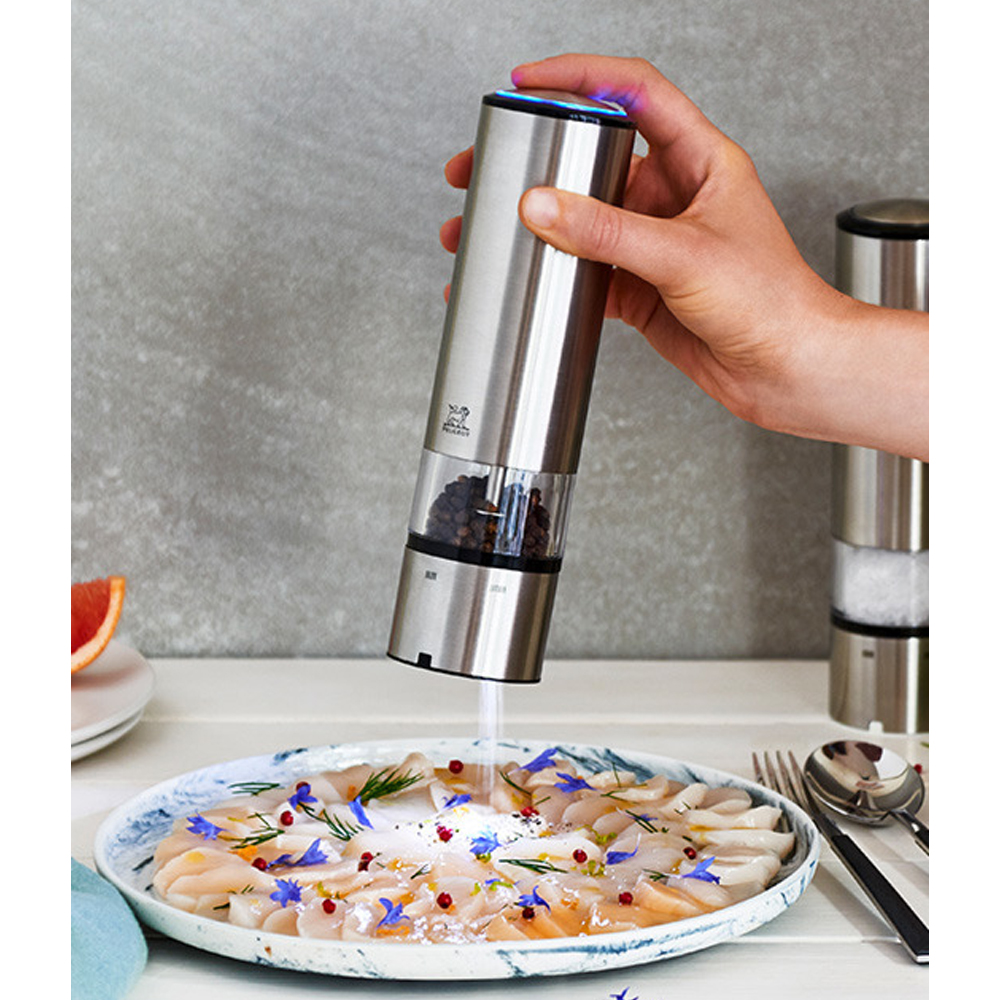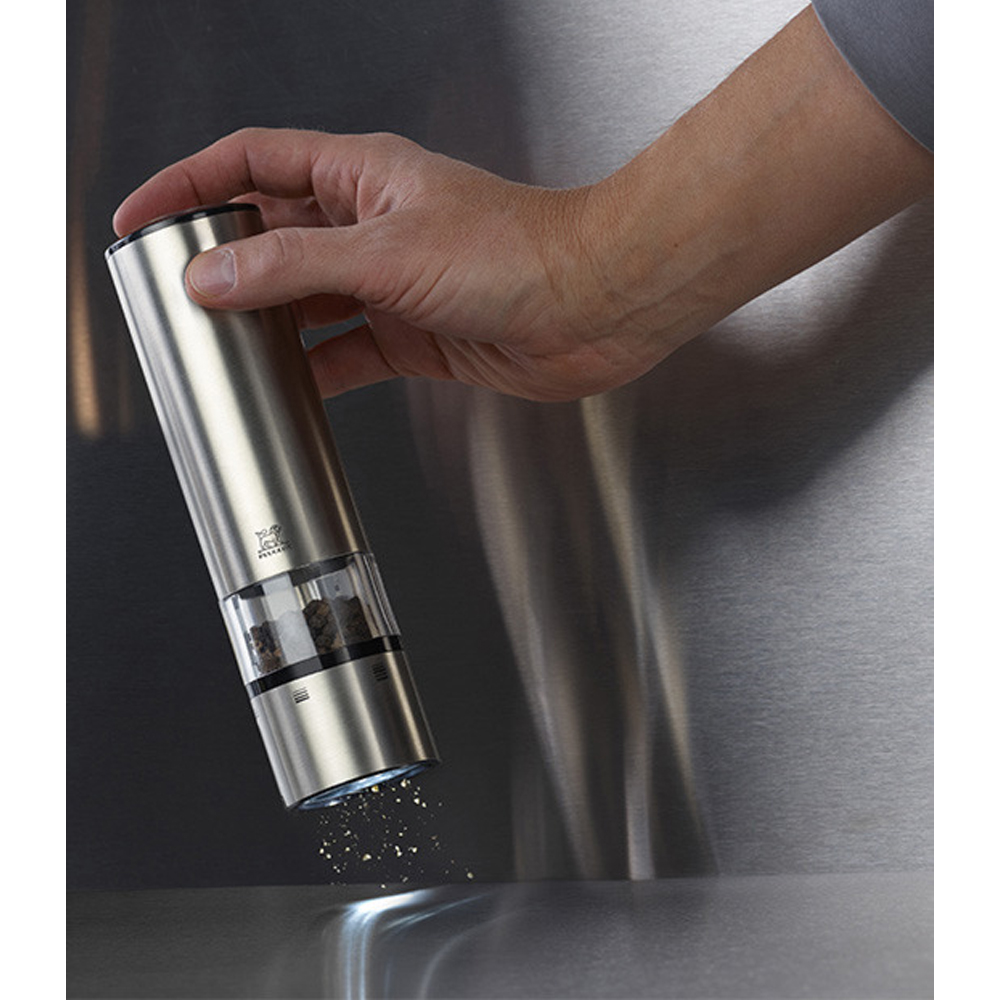 Đem lại ấn tượng với vẻ ngoài hiện đại, bóng bẩy của thép không gỉ, máy xay tiêu Peugeot Elis Sense 27162 đem lại độ tự động tuyệt vời. Sản phẩm được thiết kế để xay tiêu chỉ với một nút bấm. Bạn chỉ cần thêm tiêu vào phần hộp đựng thủy tinh và ấn nút. Tiêu sẽ được xay theo ý muốn của bạn. Hệ thống lựa chọn mức độ xay U’Select đã được cấp bằng sáng chế của Peugeot cũng rát tuyệt vời đem đến 6 lựa chọn linh hoạt mức độ mịn của tiêu để phù hợp với nhu cầu sử dụng của người dùng.