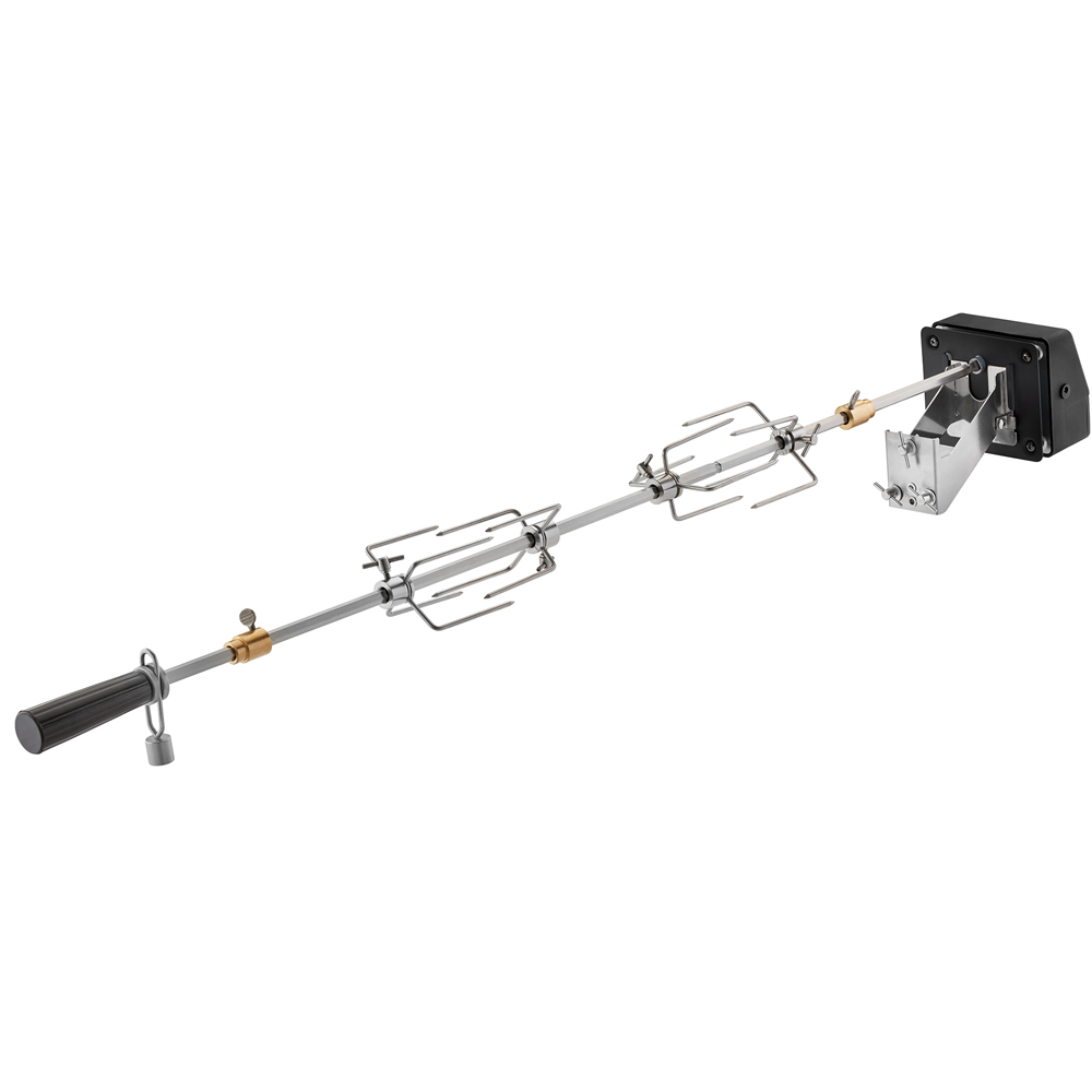 Xiên Quay Thịt Cao Cấp Roesle 25436 được sử dụng để chuẩn bị các món gà nướng, gà quay, xiên thịt quay… đảm bảo các món ăn được nướng chín hoàn hảo từ trong ra ngoài, với màu sắc bắt mắt nhất. Roesle 25436 bao gồm 4 móc thịt chắc chắn đảm bảo cố định thực phẩm ổn định. Với chất liệu thép không gỉ chắc chắn, dụng cụ này có khả năng chịu tải trọng tối đa lên tới 10kg. Để đảm bảo kết quả nấu nướng hoàn hảo nhất, thiết kế động cơ với bộ nguồn 220V đi kèm đem lại tốc độ quay xấp xỉ 3 vòng quay mỗi phút giúp phân phối lượng nhiệt đều khi quay đảm bảo thực phẩm có lớp ngoài giòn, nâu bắt mắt và bên trong mọng nước.